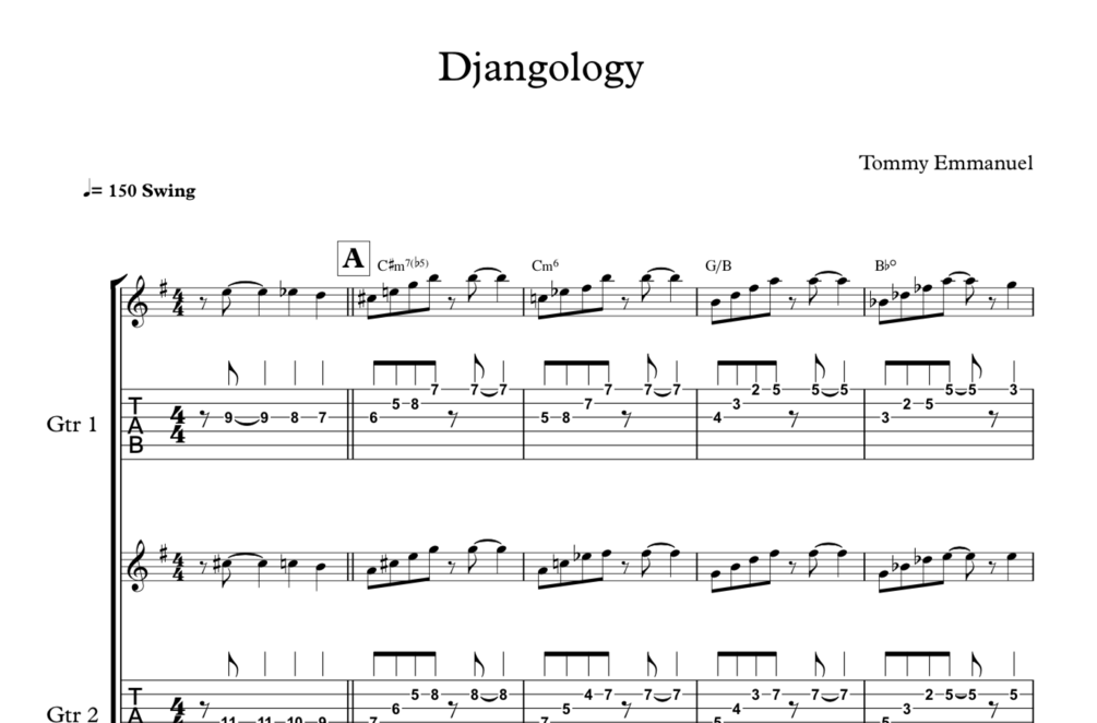 Theme transciption for two guitars from the Tommy Emmanuel version